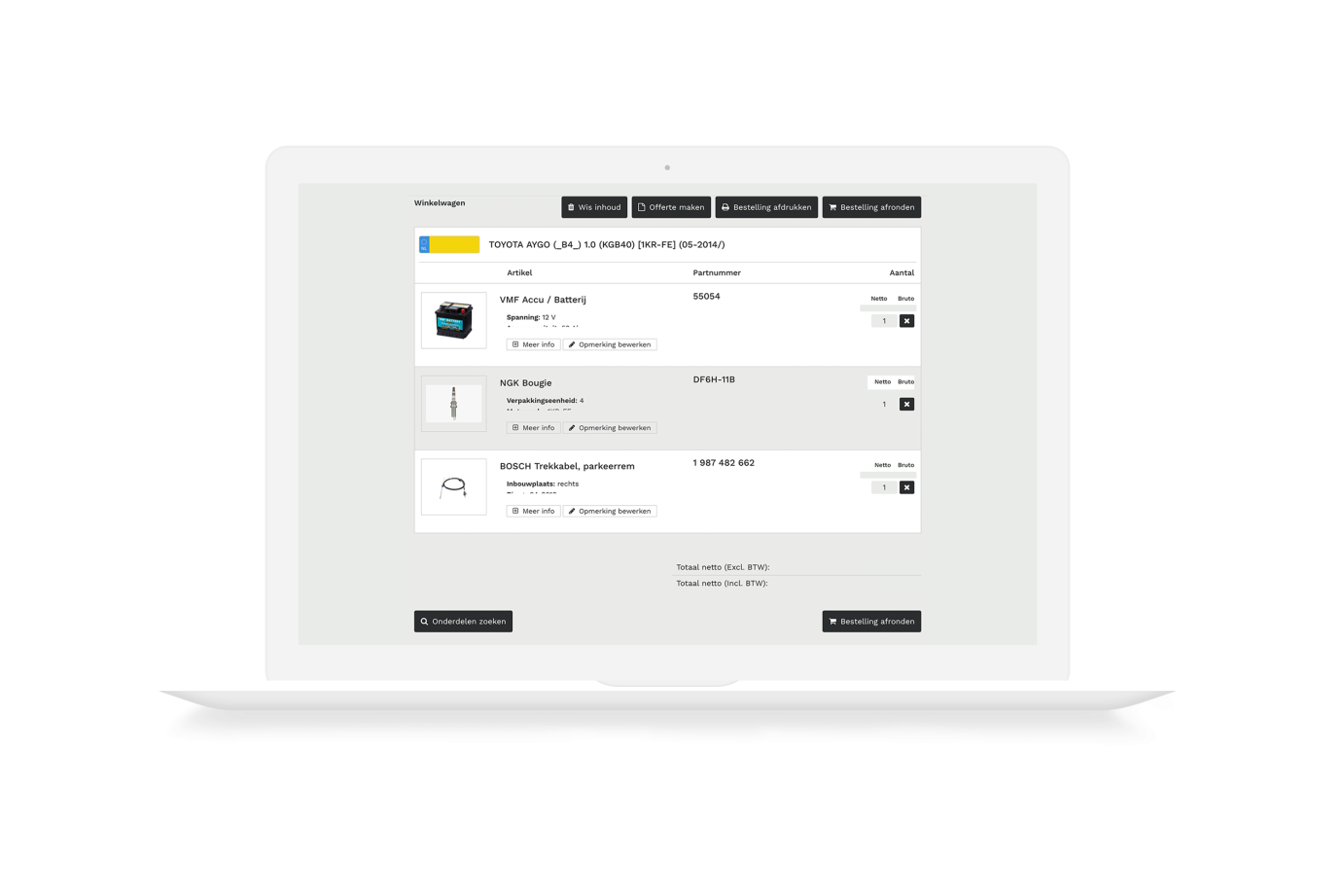 - Klanten op eenvoudige wijze producten en onderdelen te laten bestellen