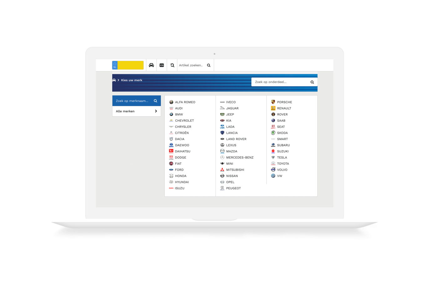 Zoeken in de database is heel eenvoudig en intuïtief. Vul kenteken of zoekcriteria in de zoekbalk in, of gebruik de filters om snel tot het juiste resultaat te komen. Zelfs de meest onervaren werknemer kan ermee uit de voeten.